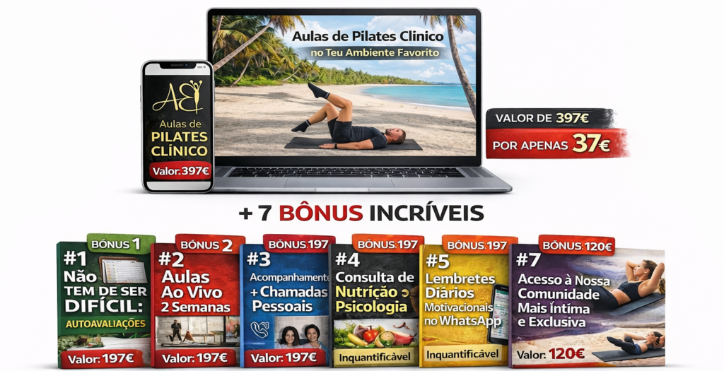 ✅ Aulas de Pilates ClĂ­nico com Evolução Progressiva em Modo Retiro Imersivo 150 aulas que podes fazer sempre que quiseres… Para aliviar dores, corrigir postura, recuperar mobilidade e fortalecer o corpo em ambientes reais de natureza (praia, floresta, montanha). Valor real: 397 €