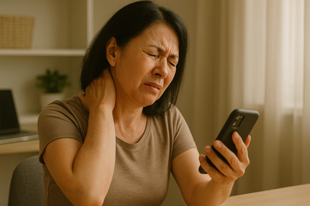 ❌❓Tens dor ou rigidez no pescoço após longos períodos a olhar para o computador ou ao usar o telemóvel?